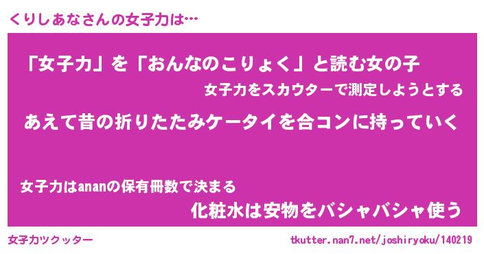 | 男性向けラノベタイトル風あだ名 | 『くりしあなの憂鬱』 |