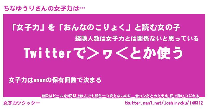 | ファンタジー風あだ名 | 『チナフェル』『エターナルチナユウリー』 |