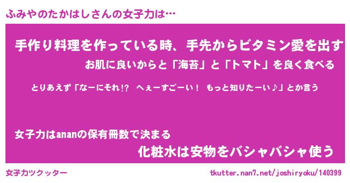 | ヘコむあだ名 | 『ふみふぇ~』『つくし』『ふみっぺ』 |