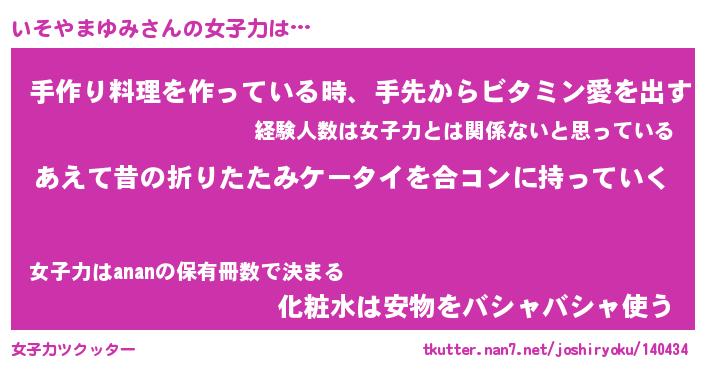 | ヘコむあだ名 | 『いそっふぃ~』『つくし』『いそお』 |