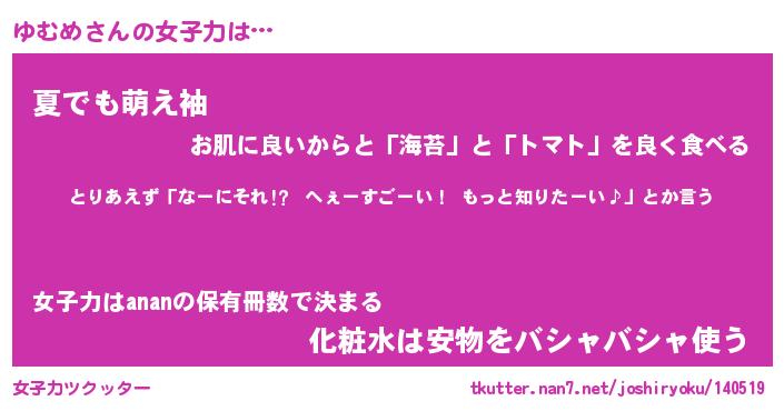 | ヘコむあだ名 | 『ゆむにゅー』『なまこ酢』 |