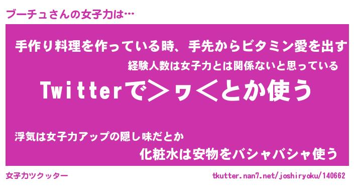 | ファンタジー風あだ名 | 『ブーフェル』『エターナルブーチュー』 |