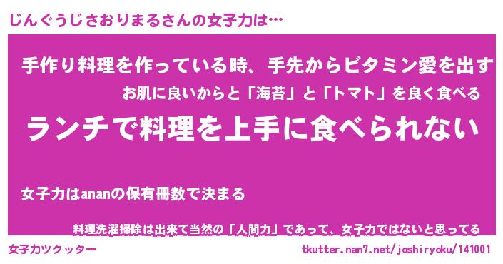 | 男性向けラノベタイトル風あだ名 | 『ジングウジサオリマルアートオンライン』 |