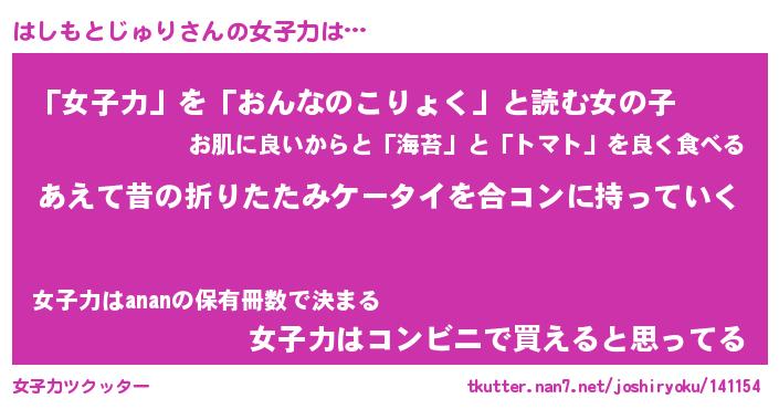| 女子向けラノベタイトル風あだ名 | 『(仮)はしもとじゅりのやんごとなき事情』 |