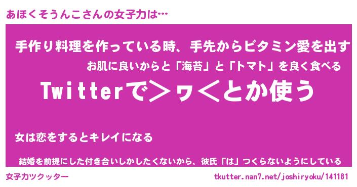 | ヘコむあだ名 | 『あほにゅー』『つくし』『あほを』 |