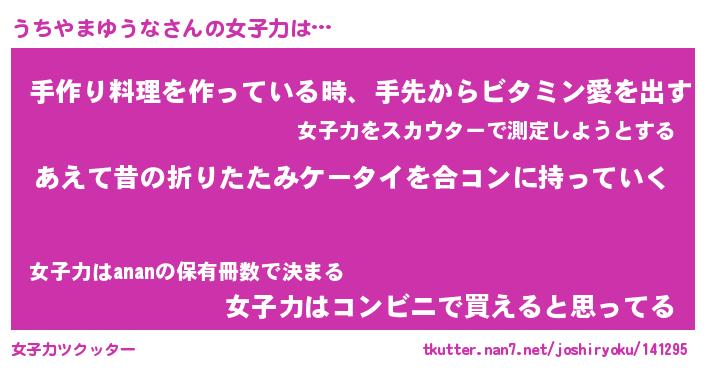 | 恥ずかしいあだ名 | 『プリティーうちやまゆうな』『うちちん』 |