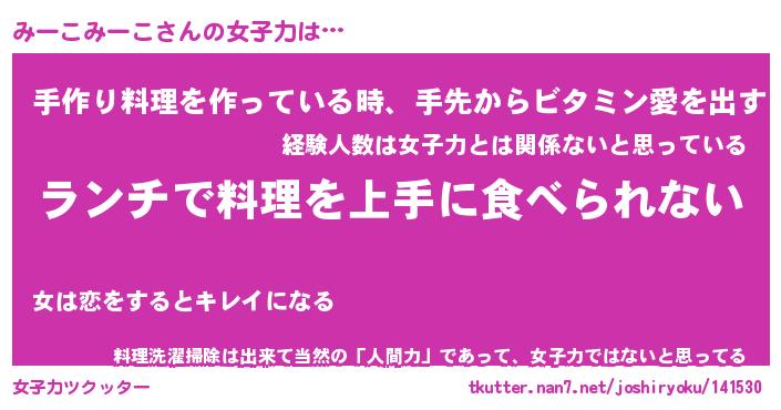 | 恥ずかしいあだ名 | 『プリティーみーこみーこ』『みーっちょ』 |