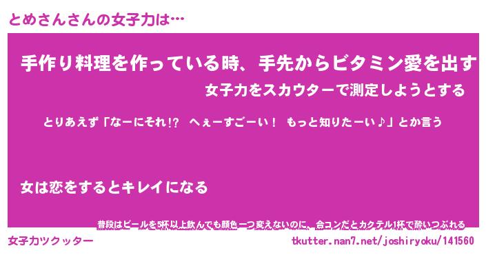 | ヘコむあだ名 | 『とめにゅー』『つくし』『とめお』 |