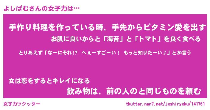 | 意味不明あだ名 | 『ペロリンよしぱむ』『永久保存よしぱむ』 |