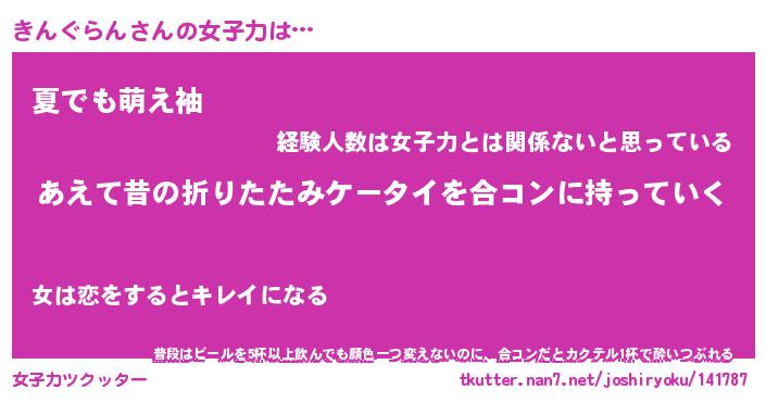 | ヘコむあだ名 | 『きんもー』『なまこ酢』『きんお』 |