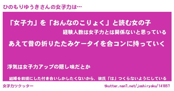 | 女子向けラノベタイトル風あだ名 | 『(仮)ひのもりゆうきのやんごとなき事情』 |