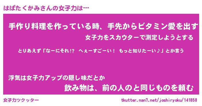 | ヘコむあだ名 | 『はばにゅー』『酢こんぶ』 |