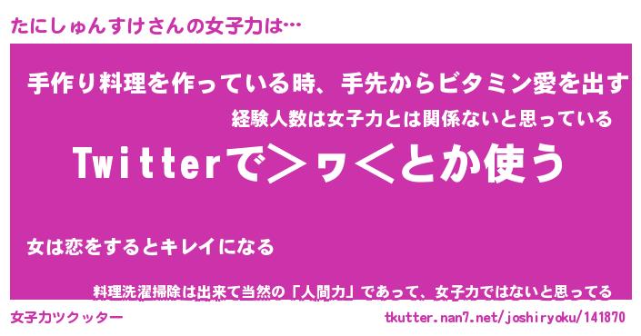 | 恥ずかしいあだ名 | 『プリティーたにしゅんすけ』『たにちん』 |