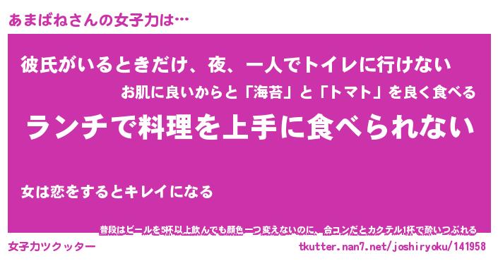 | ヘコむあだ名 | 『あまふぇ~』『つくし』『あまを』 |