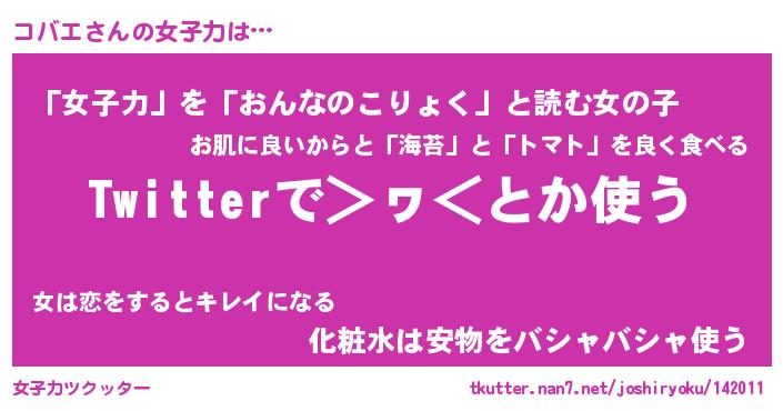 | ファンタジー風あだ名 | 『コバフェル』『エターナルコバエー』 |