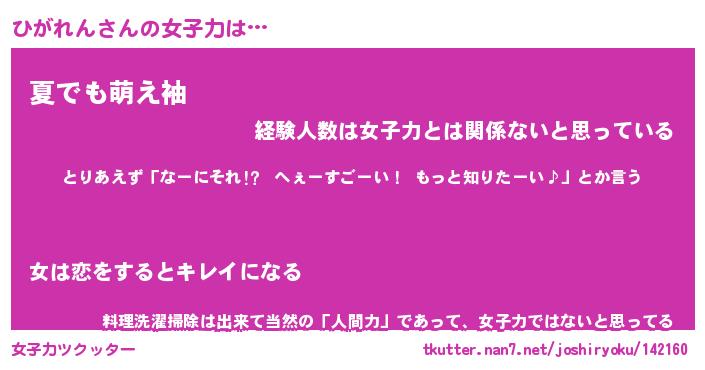 | ヘコむあだ名 | 『ひがふぇ~』『なまこ酢』『ひがを』 |