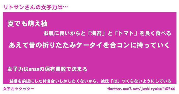 | ヘコむあだ名 | 『リトふぇ~』『豆乳』『リトっ子』 |