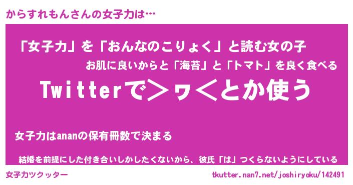 | ポケモン風あだ名 | 『カラチュウ』『カラスダネ』 |