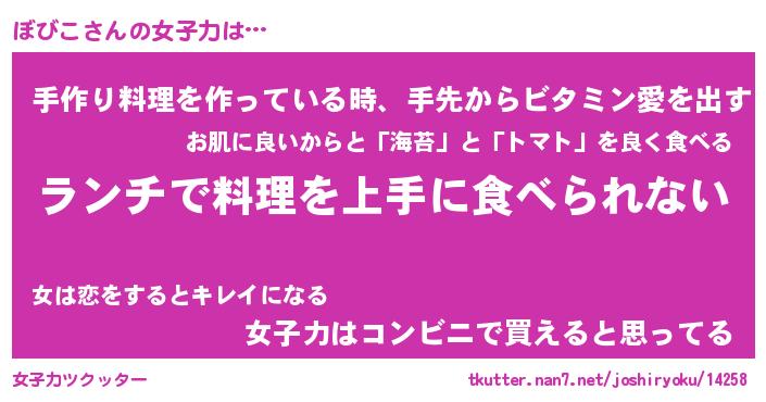 | ヘコむあだ名 | 『ぼびにー』『なまこ酢』『ぼびっ子』 |
