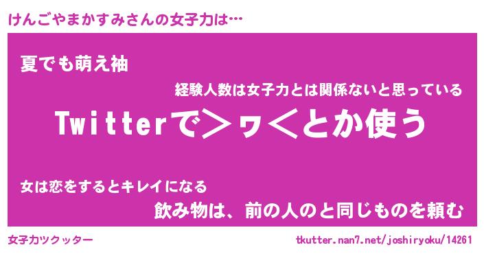 | ヘコむあだ名 | 『けんっふぃ~』『なまこ酢』 |
