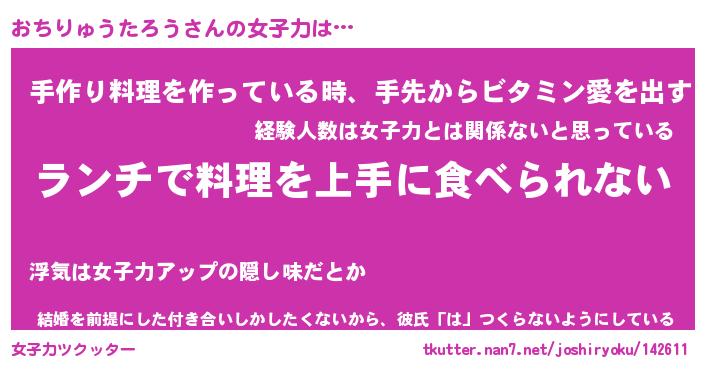 | 料理風あだ名 | 『ネギたっぷりおちりゅうたろうの南蛮漬け』 |