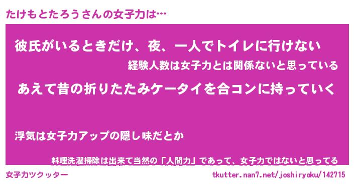 | ヘコむあだ名 | 『たけにー』『酢こんぶ』 |