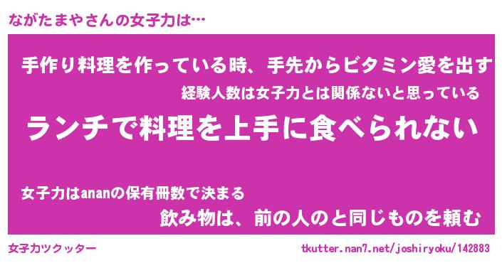 | 恥ずかしいあだ名 | 『プリティーながたまや』『ながっちょ』 |