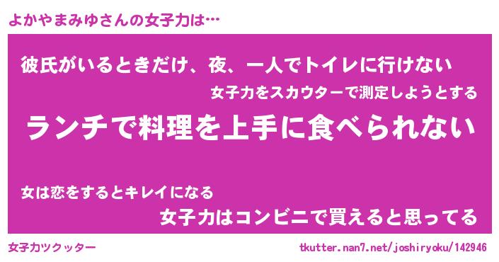 | 恥ずかしいあだ名 | 『プリティーよかやまみゆ』『よかっちょ』 |