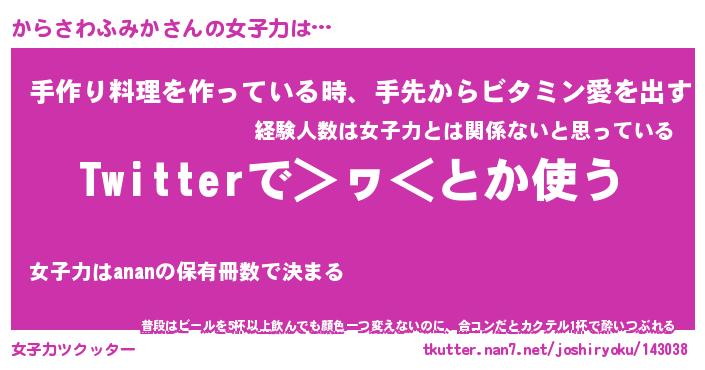 | 肩書あだ名 | 『からさわふみか社長』 |