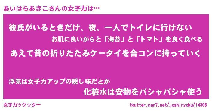 | 胡散臭い通販商品みたいなあだ名 | 『必ず成功するブレスレット…その名も「あいはらあきこ」』 |