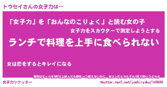 | ヘコむあだ名 | 『トウにー』『酢こんぶ』『トウっぺ』 |