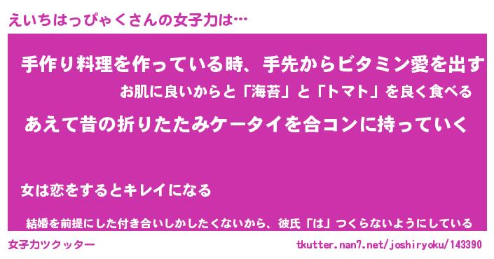 | ヘコむあだ名 | 『えいっふぃ~』『つくし』 |