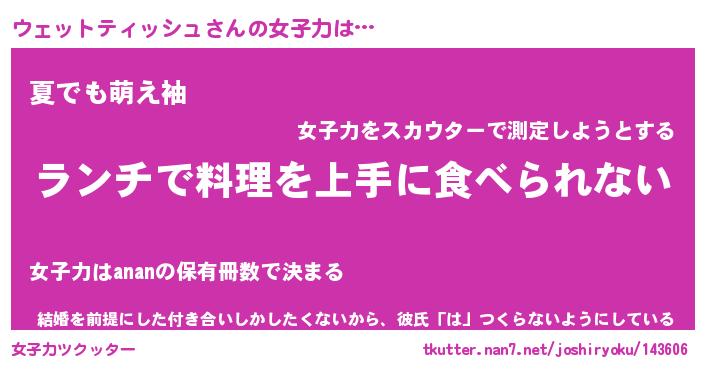 | 男性向けラノベタイトル風あだ名 | 『ウェットティッシュアートオンライン』 |