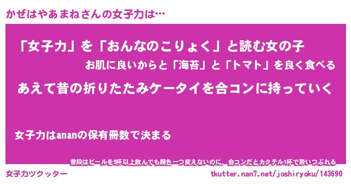 | 胡散臭い通販商品みたいなあだ名 | 『必ず成功するブレスレット…その名も「かぜはやあまね」』 |