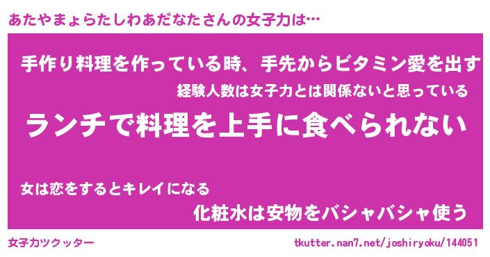 | 料理風あだ名 | 『ネギたっぷりあたやまょらたしわあだなたの南蛮漬け』 |