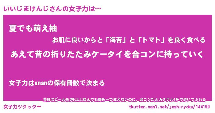 | 女子向けラノベタイトル風あだ名 | 『(仮)いいじまけんじのやんごとなき事情』 |