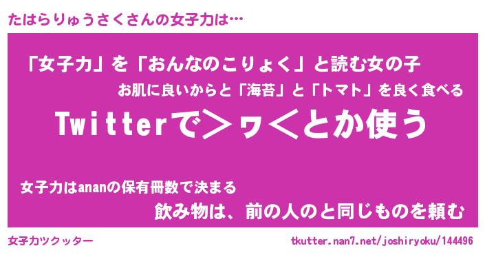 | 男性向けラノベタイトル風あだ名 | 『たはらりゅうさくの憂鬱』 |