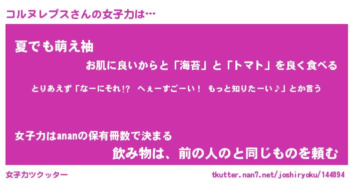| 恥ずかしいあだ名 | 『プリティーコルヌレプス』『コルっちょ』 |