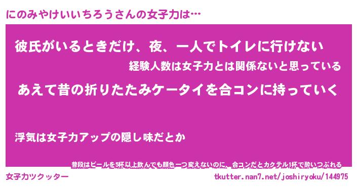 | 胡散臭い通販商品みたいなあだ名 | 『必ず成功するブレスレット…その名も「にのみやけいいちろう」』 |