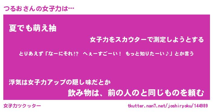 | ヘコむあだ名 | 『つるにゅー』『なまこ酢』『つるを』 |
