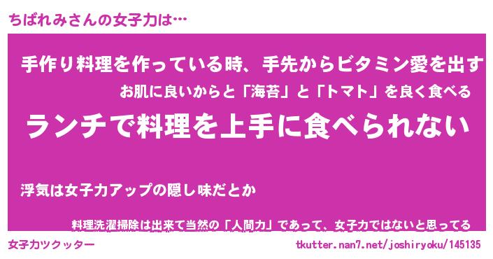 | ヘコむあだ名 | 『ちばふぇ~』『牛乳』『ちばを』 |