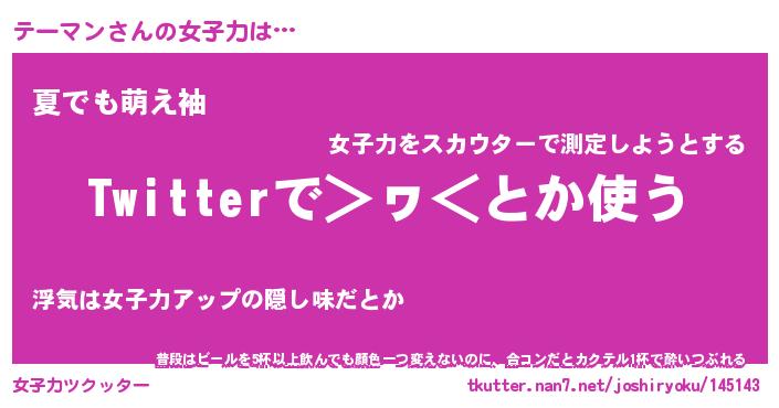 | 男性向けラノベタイトル風あだ名 | 『テーマンの憂鬱』 |