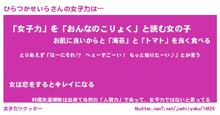 | 胡散臭い通販商品みたいなあだ名 | 『モテモテ間違いなし水晶球…その名も「ひらつかせいら」』 |