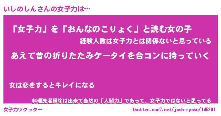 | ファンタジー風あだ名 | 『イシフェル』『エターナルイシノシンー』 |