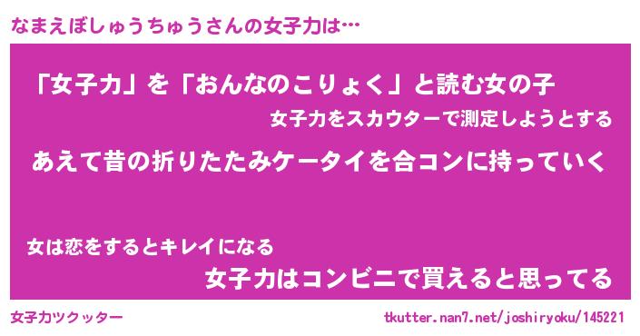 | 胡散臭い通販商品みたいなあだ名 | 『必ず成功するブレスレット…その名も「なまえぼしゅうちゅう」』 |