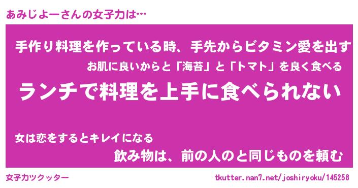 | ファンタジー風あだ名 | 『アミフェル』『エターナルアミジヨーー』 |