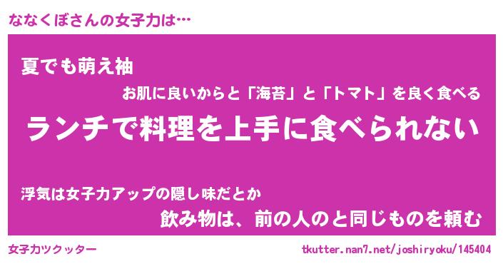 | ヘコむあだ名 | 『ななふぇ~』『豆乳』『ななを』 |