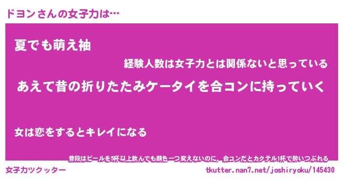 | ヘコむあだ名 | 『ドヨにゅー』『酢こんぶ』 |