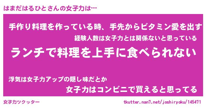 | 料理風あだ名 | 『ネギたっぷりはまだはるひとの南蛮漬け』 |