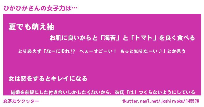 | 恥ずかしいあだ名 | 『プリティーひかひか』『ひかっちょ』 |
